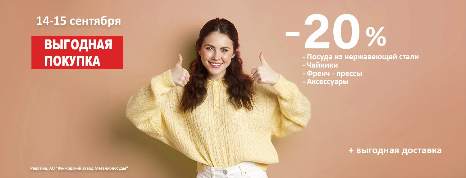 14 и 15 сентября в интернет-магазине Kukmara будет действовать скидка 20%: